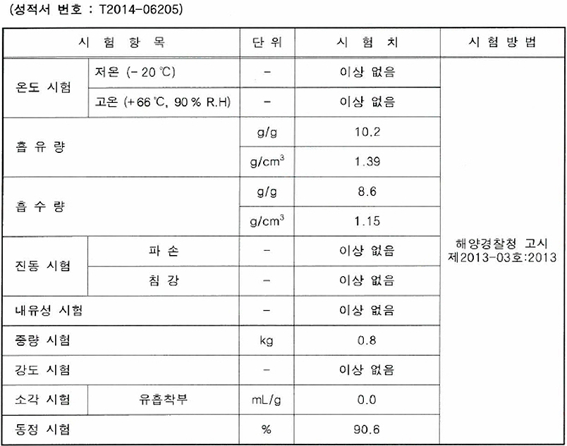 일반 유흡착포와는 달리 수면 하에서나 표면이 건조한 상태에서도 오일성분을 동일하게 흡수한다.