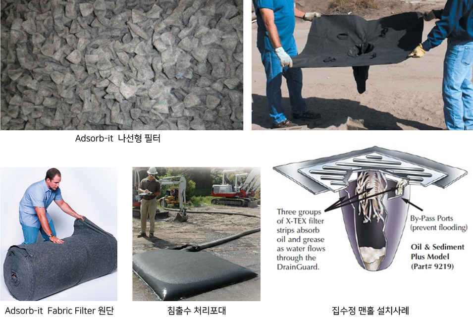 Adsorb-it®은 섬유상 구조로 되어있어 일반적인 폴리프로필렌 제품보다 염류 및 물의 흐름에 장애를 주지 않으며 오일과 석유류 제품의 포집 기능이 탁월하다.